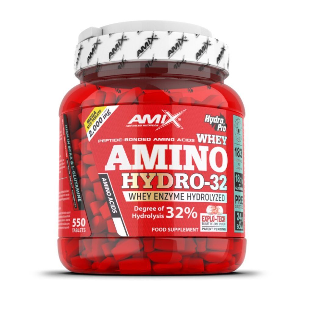 AMINO HYDRO 32 je extrémně silný aminokyselinový doplněk s téměř 77% obsahem čistých aminokyselin v 2000mg tabletě. Obsahuje velmi vysoké procento větvených aminokyselin BCAA a L-Glutamínu, velice významné složky, které působí při intenzivní zátěži jako ochrana svalů a podporují růst kvalitní svalové hmoty. Ideální pro všechny, kteří hledají kvalitní zdroj aminokyselin s maximálně rychlým vstřebáváním.