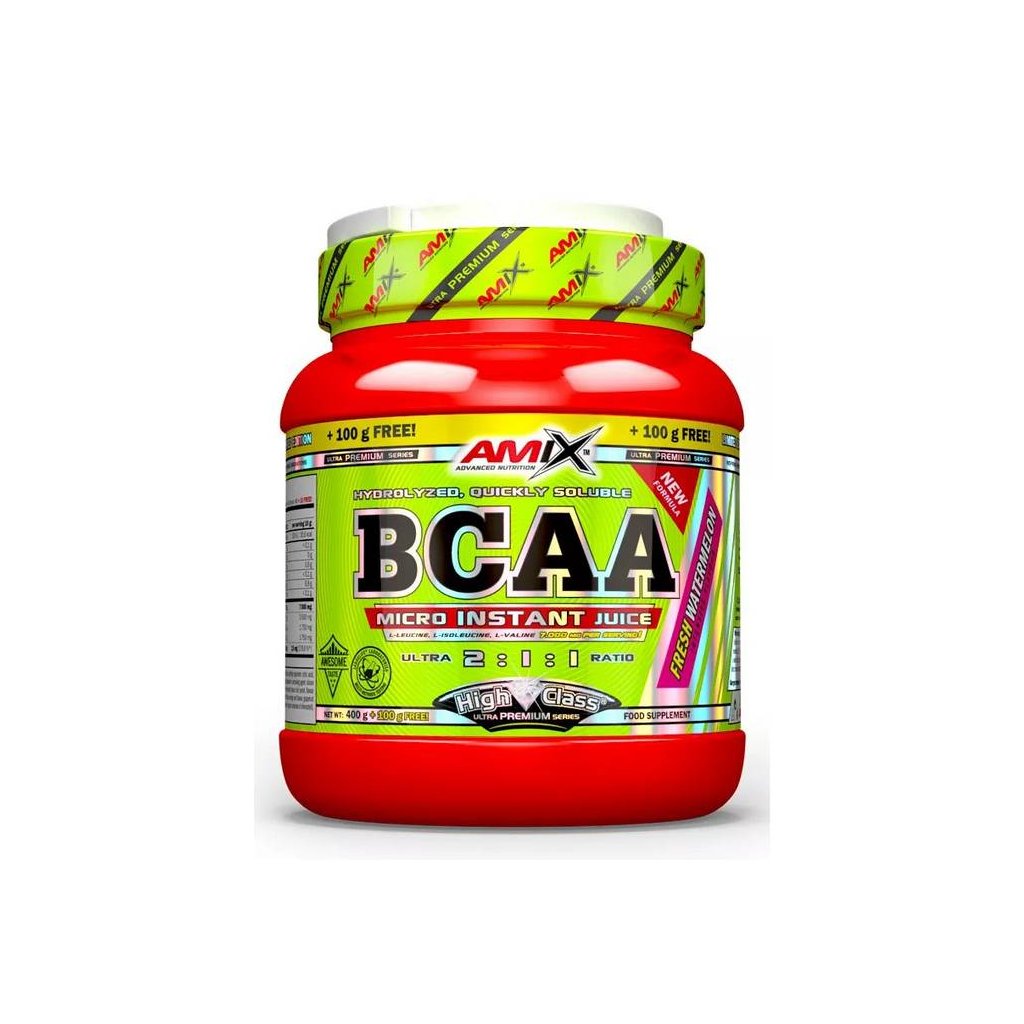 Amix™ BCAA Micro Instant Juice je vysoce koncentrovaná forma BCAA, speciálně vyrobená pro přípravu dokonale rozpustného, chutného a osvěžujícího nápoje. BCAA Micro Instant Juice je zdroj vysoce kvalitních super-mikronizovaných instantních aminokyselin s rozvětveným řetězcem (BCAA) v poměru 2:1:1. Aminokyseliny BCAA jsou stavebními kameny bílkovin, které přispívá k růstu a udržení svalové hmoty. Kombinace těchto esenciálních aminokyselin (L-leucin, L-isoleucin, L-valin) tvoří cca. 33% celkových svalových bílkovin.