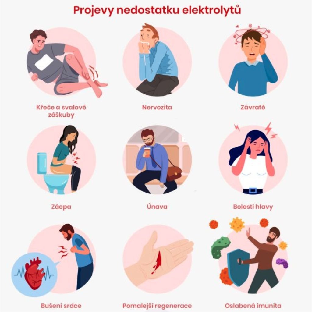 K nízkému obsahu elektrolytů přispívá stres, konzumace alkoholu, pohybová aktivita, pocení nebo užívání některých léků. To může následně způsobovat křeče, svalové záškuby, nervozitu, závratě, zácpu, svalovou slabost, bolesti hlavy, bušení srdce, oslabenou imunitu, únavu, ale také pomalejší regeneraci. Rozhodující je pak také nejen přítomnost elektrolytů, ale i jejich vzájemný poměr.