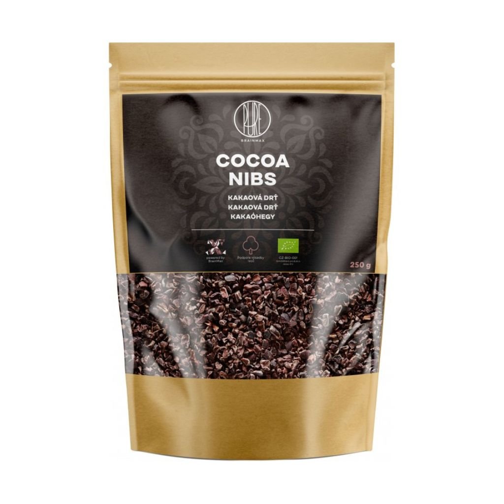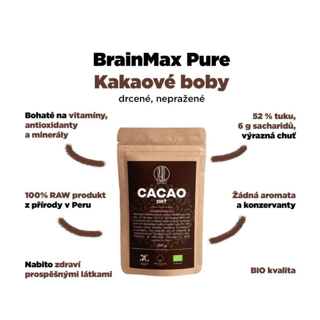 BrainMax Pure Drcené Kakaové Boby (RAW, BIO), Nepražené, 250 g