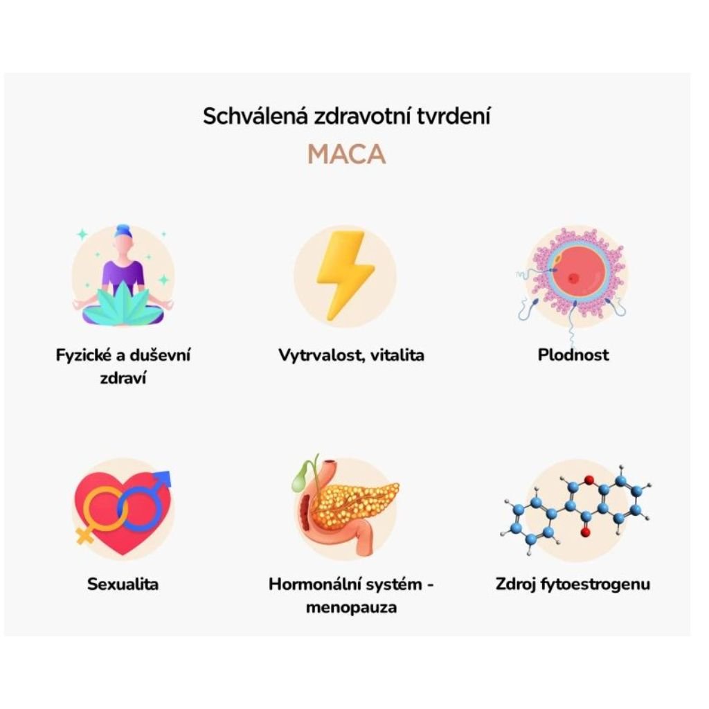 Studie publikovaná v časopisu Evidence-Based Complementary and Alternative Medicine ukázala, že Maca pomáhá zlepšit hormonální profil a snížit symptomy spojené s menopauzou u žen, ale i na plodnost žen.
