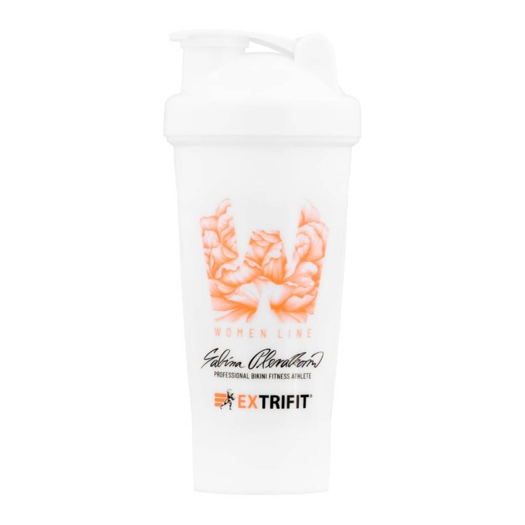 Šejkr je bílé barvy o objemu 600 ml, štíhlý, směrem ke dnu se zužuje. Uzávěr šejkru je šroubovací, malé víčko je zaklapávací. Po stranách jsou protiskluzové tvarované části, takže se šejkr dobře drží. Vzadu najdete rysky v ml/oz pro odměření a průhled pro vizuální kontrolu náplně, vpředu je znak Women Line, logo Extrifit a podpis Sabiny Plevákové. Šejkr obsahuje pružinovou kuličku pro lepší rozmíchání nápoje.