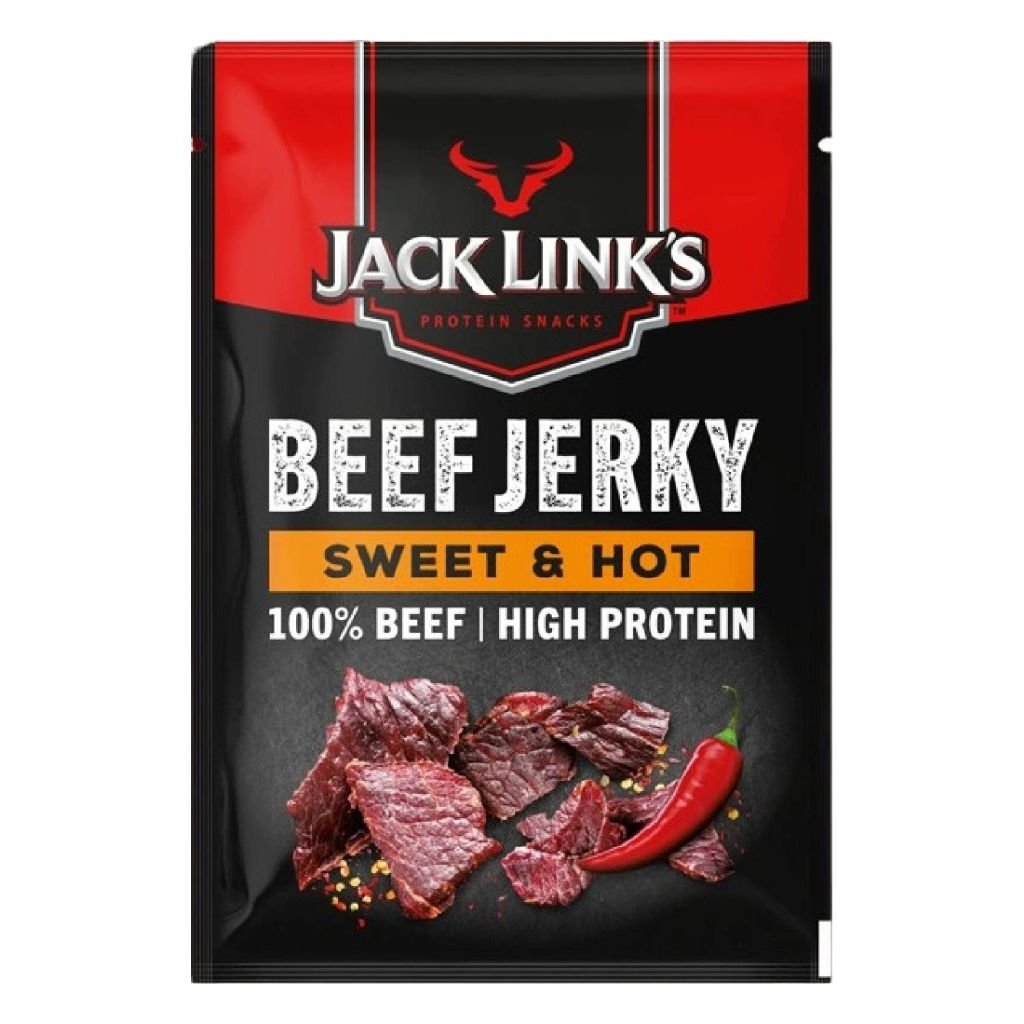 Beef Jerky je sušené hovězí maso (100%) s nízkým obsahem tuku (max. 4%) a vysokým podílem bílkovin - až 39%, což z něj dělá výborný a zdravý snack z prémiového hovězího masa tenderloin. Snack je vhodný k přímé konzumaci, a dokonce je i součástí ,,survival kit-u" mnoha ozbrojených složek. Toto 70-gramové balení je vyrobeno z prémiového hovězího masa se zachováním přirozených a původních nutričních hodnot. Sušené maso od výrobce Jack Link's je číslo 1 v segmentu zdravých masných snacků v USA. Společnost Jacka Linka byla založena v roce 1885 a dnes vyrábí přes 100 druhů masných snacků a působí ve více než 40 zemích.