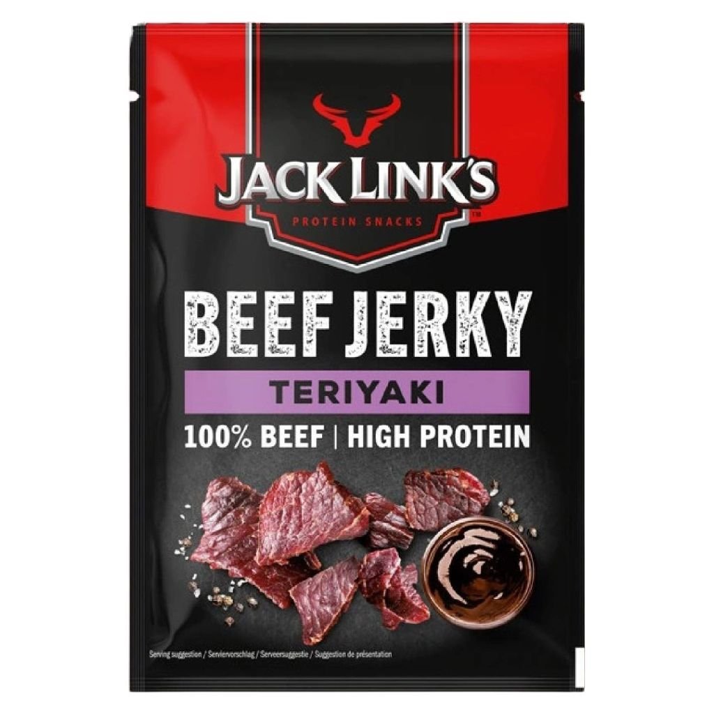 Beef Jerky je sušené hovězí maso (100%) s nízkým obsahem tuku (max. 4%) a vysokým podílem bílkovin - až 39%, což z něj dělá výborný a zdravý snack z prémiového hovězího masa tenderloin. Snack je vhodný k přímé konzumaci, a dokonce je i součástí ,,survival kit-u" mnoha ozbrojených složek. Toto 70-gramové balení je vyrobeno z prémiového hovězího masa se zachováním přirozených a původních nutričních hodnot. Sušené maso od výrobce Jack Link's je číslo 1 v segmentu zdravých masných snacků v USA. Společnost Jacka Linka byla založena v roce 1885 a dnes vyrábí přes 100 druhů masných snacků a působí ve více než 40 zemích.