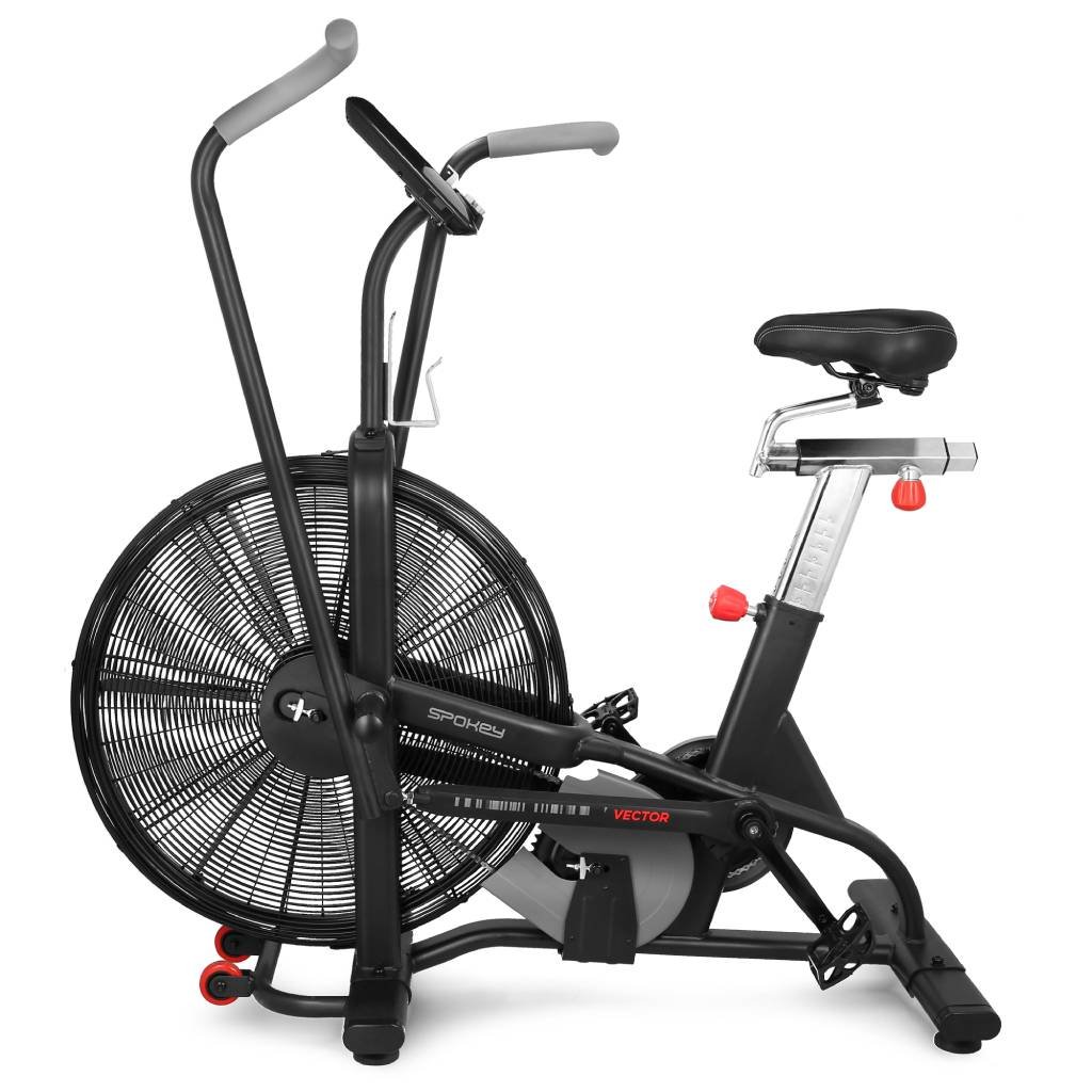 Air Bike Spokey VECTOR, to je odolný a pevný model vyrobený z těch nejkvalitnějších materiálů, který pomocí vzduchového odporu zvyšuje intenzitu tréninku. Jak to funguje? Zvyšování rychlosti a síly během šlapání zvyšuje odpor vytvářený kolem s lopatkami. Dynamiku cvičení tak můžete kontrolovat díky zvyšování úsilí při tréninku. Přední kolo s lopatkami navíc vytváří přirozené chlazení a proudění vzduchu! A co víc, pohonný systém v Air Biku Spokey VECTOR je řetězový, stejně jako tomu je u profesionálních fitness strojů. Díky tomu si můžete být jistí bezproblémovým chodem a silným napětím bez skoků.