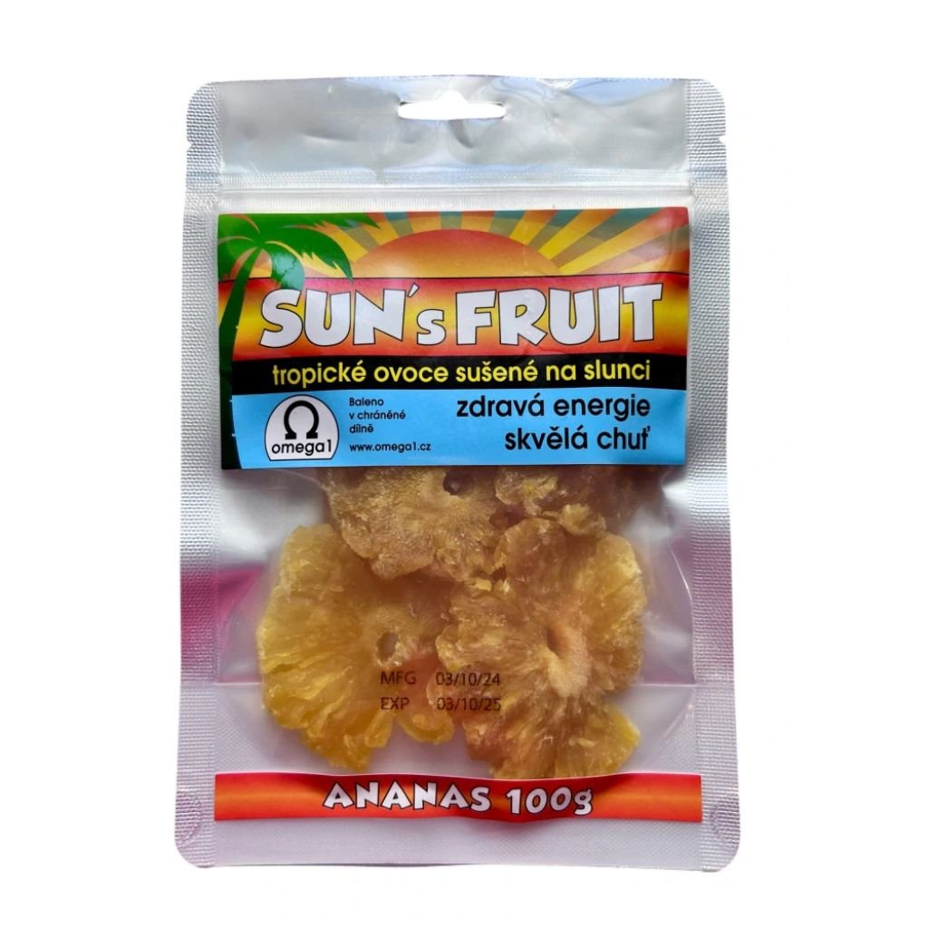 Vyzkoušejte sladkokyselou osvěžující chuť ananasu, která vás okamžitě přenese do tropického ráje! Sun’s Fruit přináší sušené plátky ananasu, které si díky šetrnému sušení na slunci uchovávají svou šťavnatou chuť a cenné živiny.